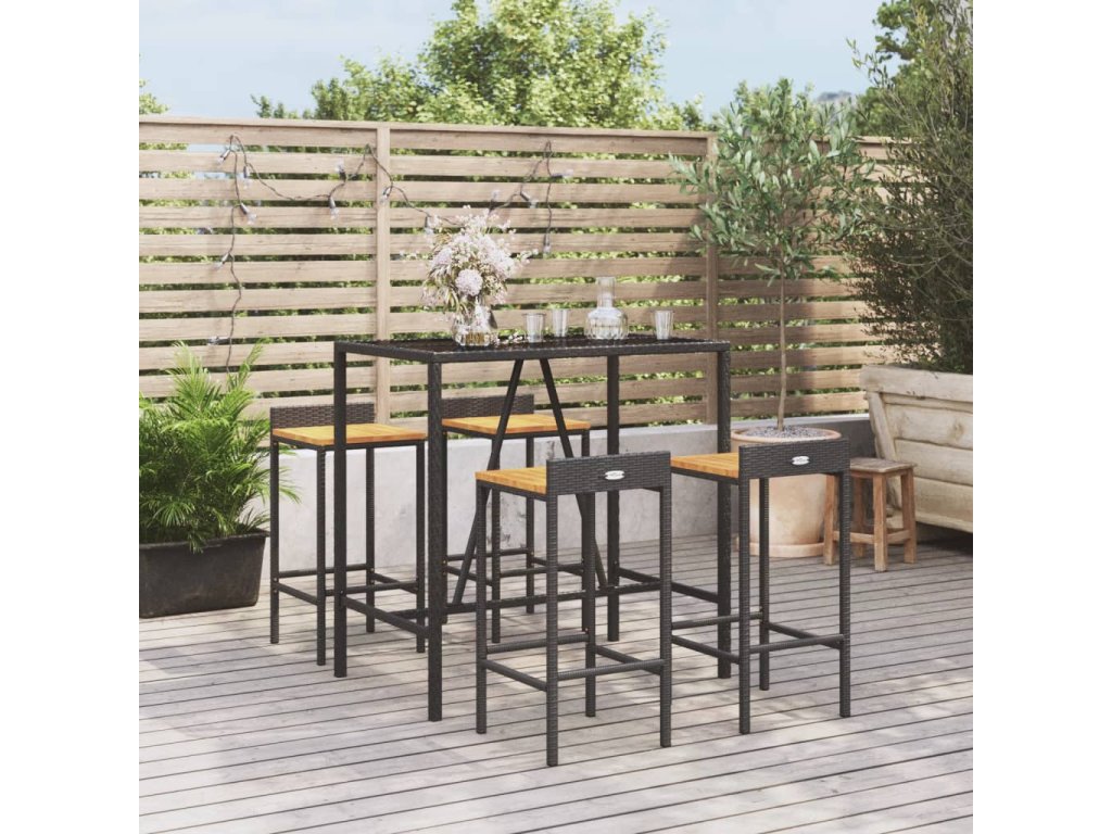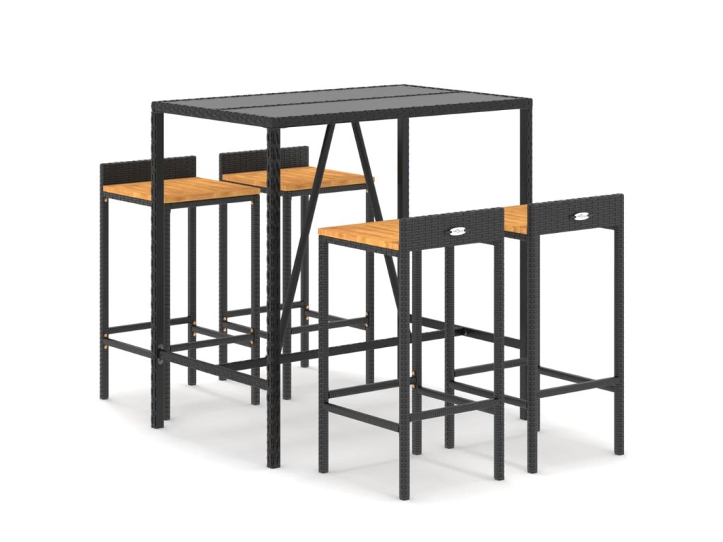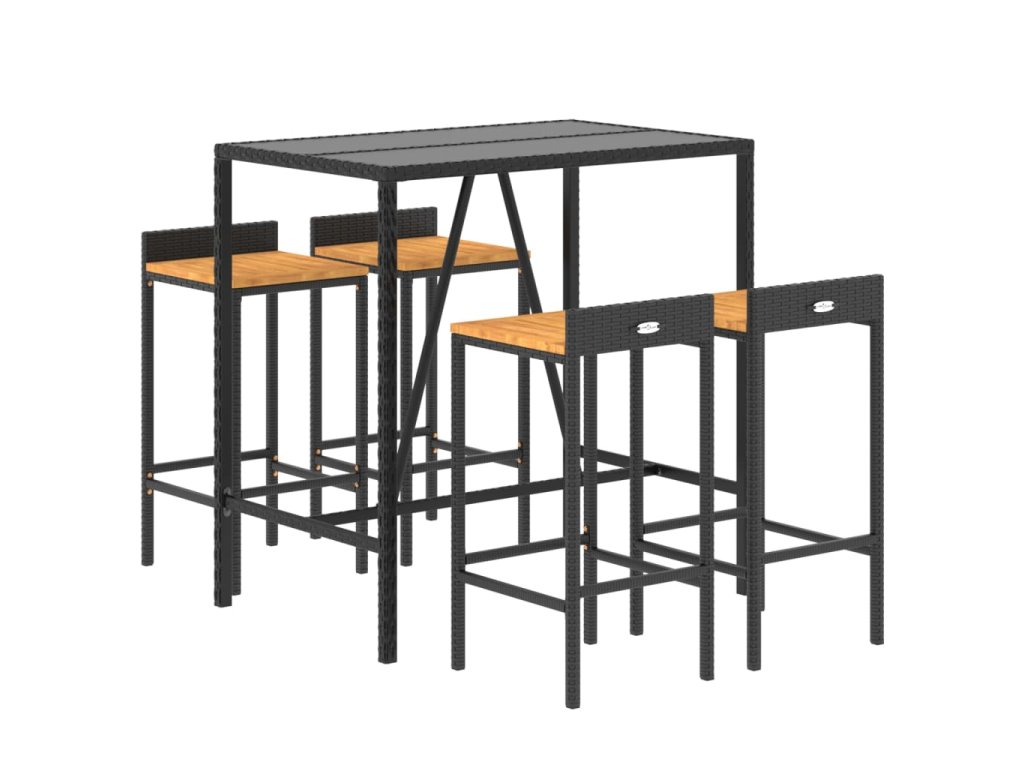 5dílný zahradní barový set černý polyratan a masivní akácie 3187676