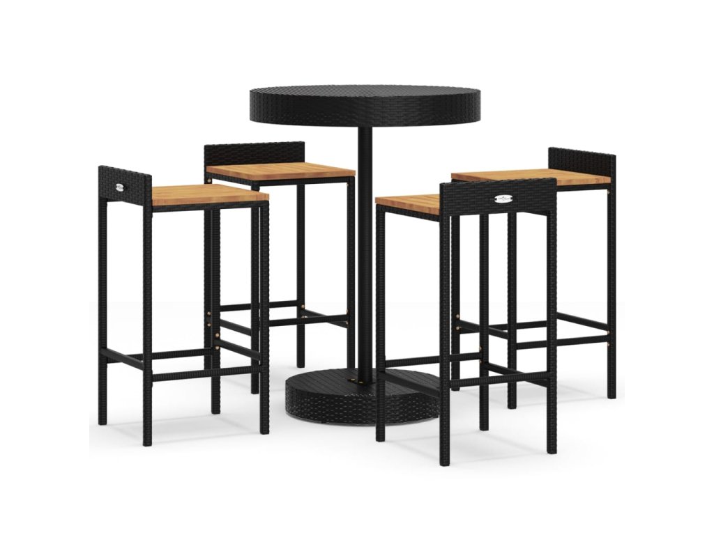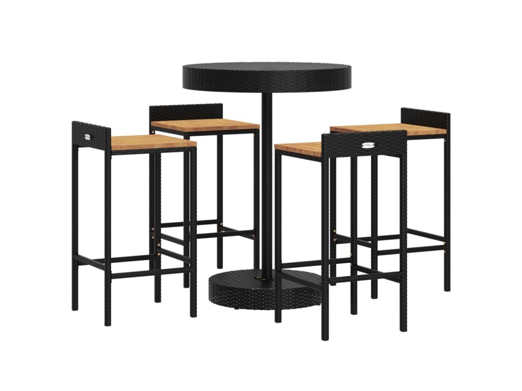 5dílný zahradní barový set černý polyratan a masivní akácie 3187716