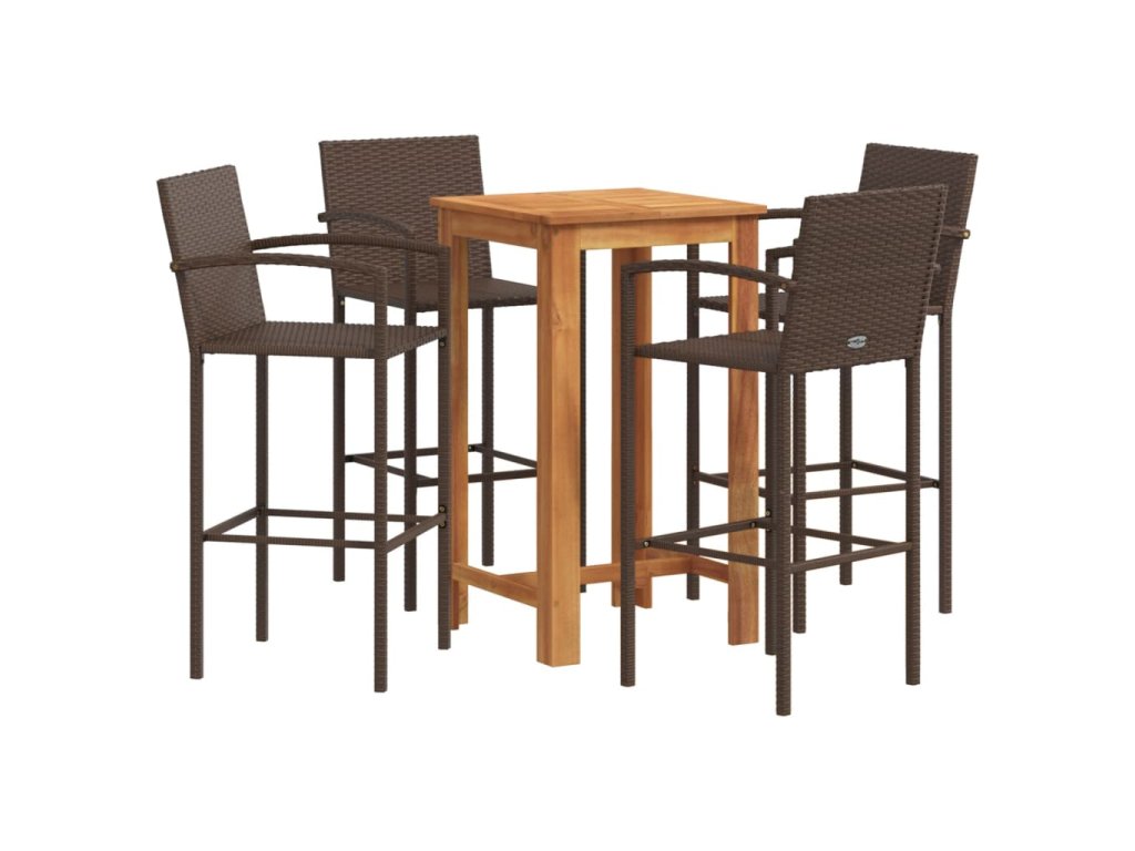 5dílný zahradní barový set hnědý masivní akácie a polyratan 3295275