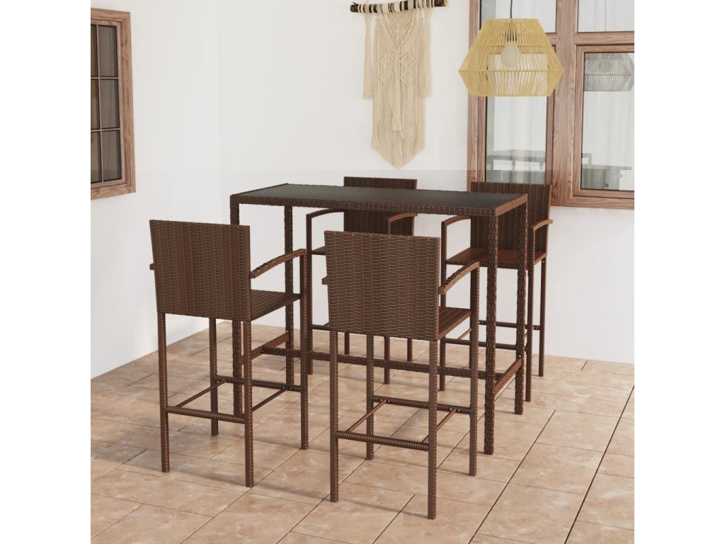 5dílný zahradní barový set polyratan hnědý 3064842