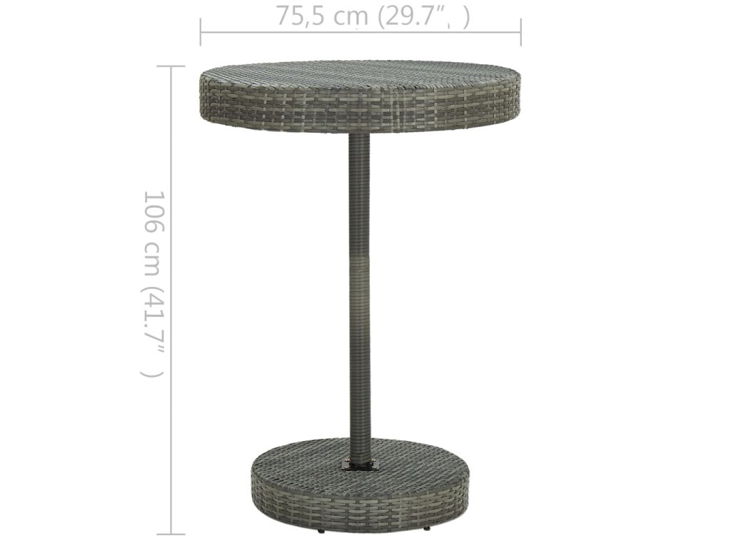 Barový stůl podepírá rám z práškově lakované oceli, který mu dodává na stabilitě a odolnosti. Kulatá stolní deska vám skvěle poslouží k odkládání nápojů a občerstvení nebo k vystavení dekorativních předmětů. Stoličky mají pevnou konstrukci z oceli, která je opletená voděodolným PE ratanem, jsou tedy stabilní a snadno se přesouvají. Opěrka na nohy vám navíc při sezení zajistí větší pohodlí.
