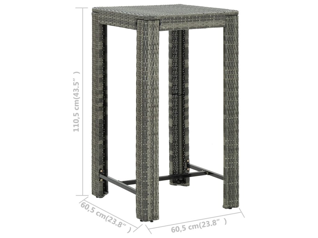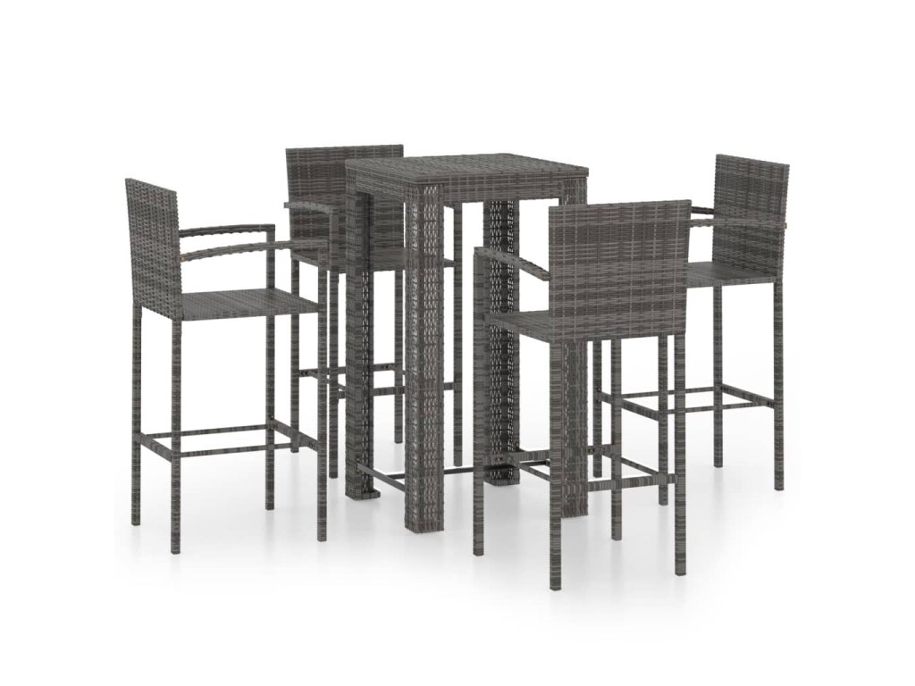 5dílný zahradní barový set s područkami polyratan šedý 3064809