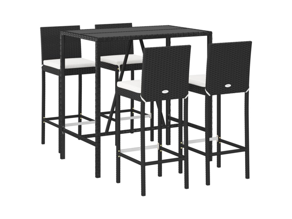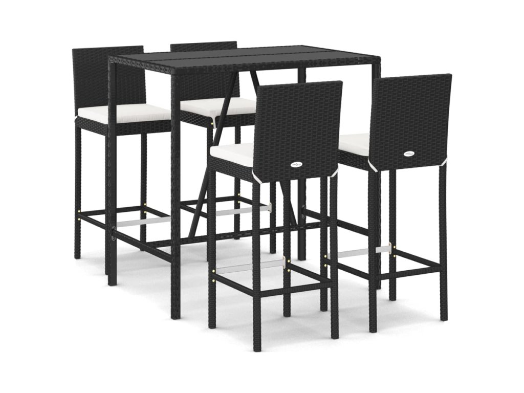 5dílný zahradní barový set s poduškami černý polyratan 3187643