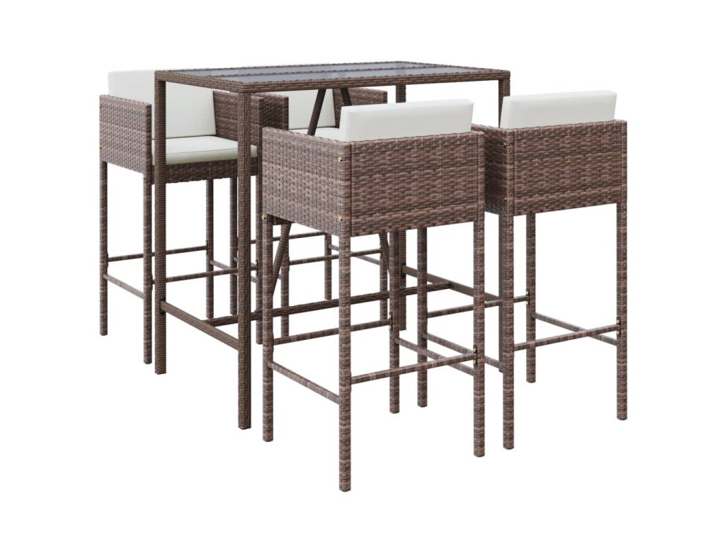 5dílný zahradní barový set s poduškami hnědý polyratan 3200655