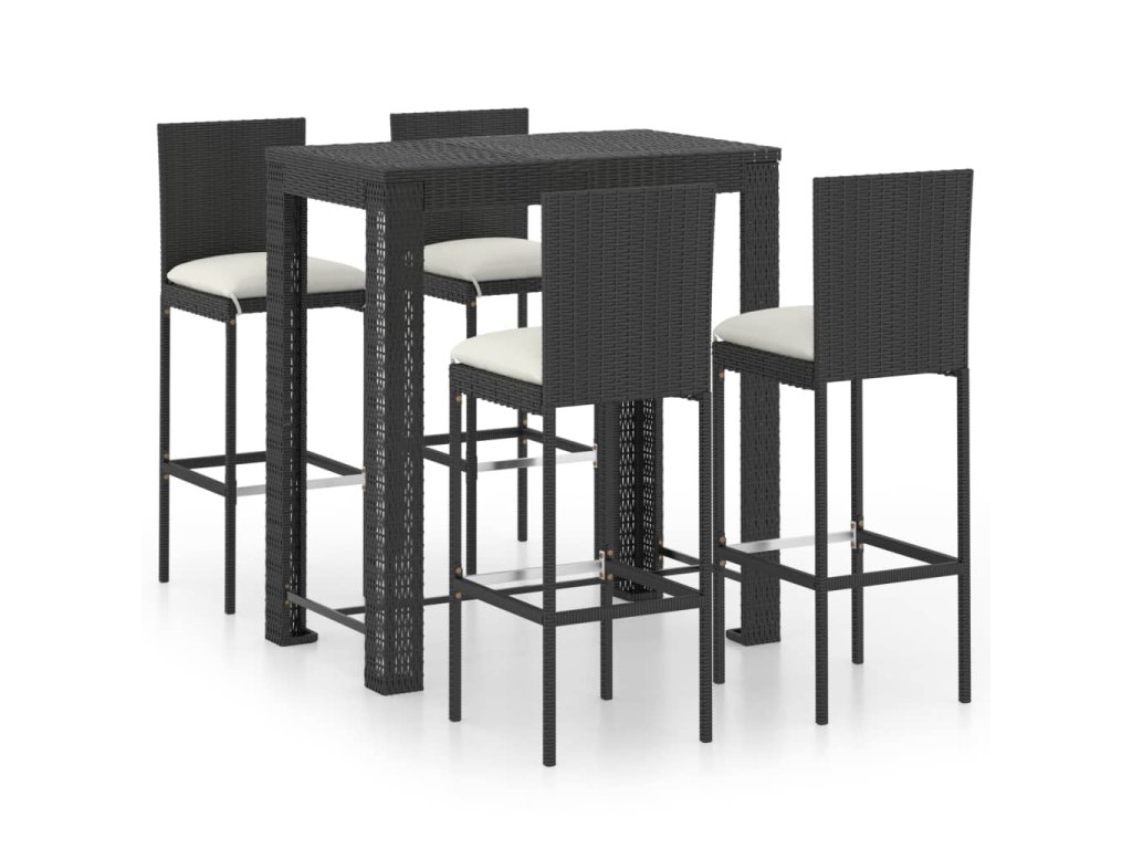 5dílný zahradní barový set s poduškami polyratan černý 3064796