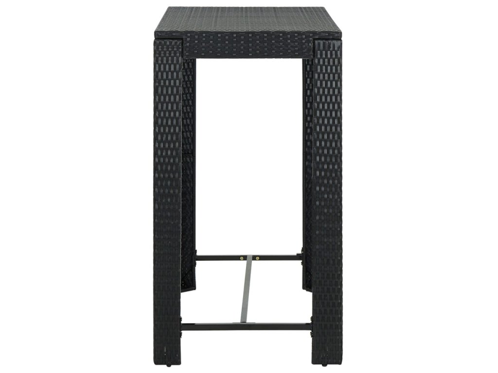 Barový stůl je zpevněný ocelovým rámem s práškovým nástřikem, takže je stabilní a bytelný. Čtvercová deska stolu je ideální pro servírování nápojů, jídla nebo k vystavování dekorativních předmětů. Stoličky mají robustní rám z oceli a jsou vyrobené z klimaticky odolného PE ratanu, který je zárukou stability a umožňuje snadné přenášení. Poduška a opěrka na nohy přispívají k většímu pohodlí při sezení na stoličce. Polyesterový potah na podušky se skrytým zipem usnadňuje čištění.