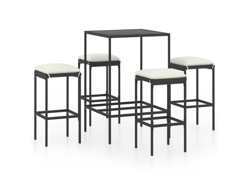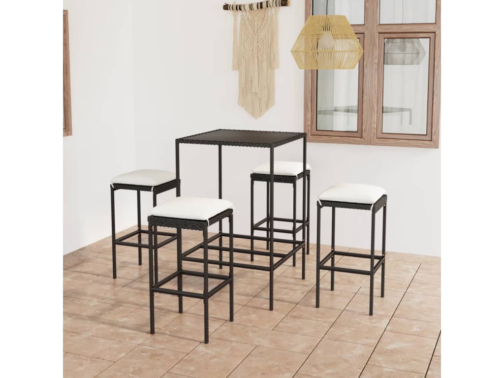 5dílný zahradní barový set s poduškami polyratan černý 3064820