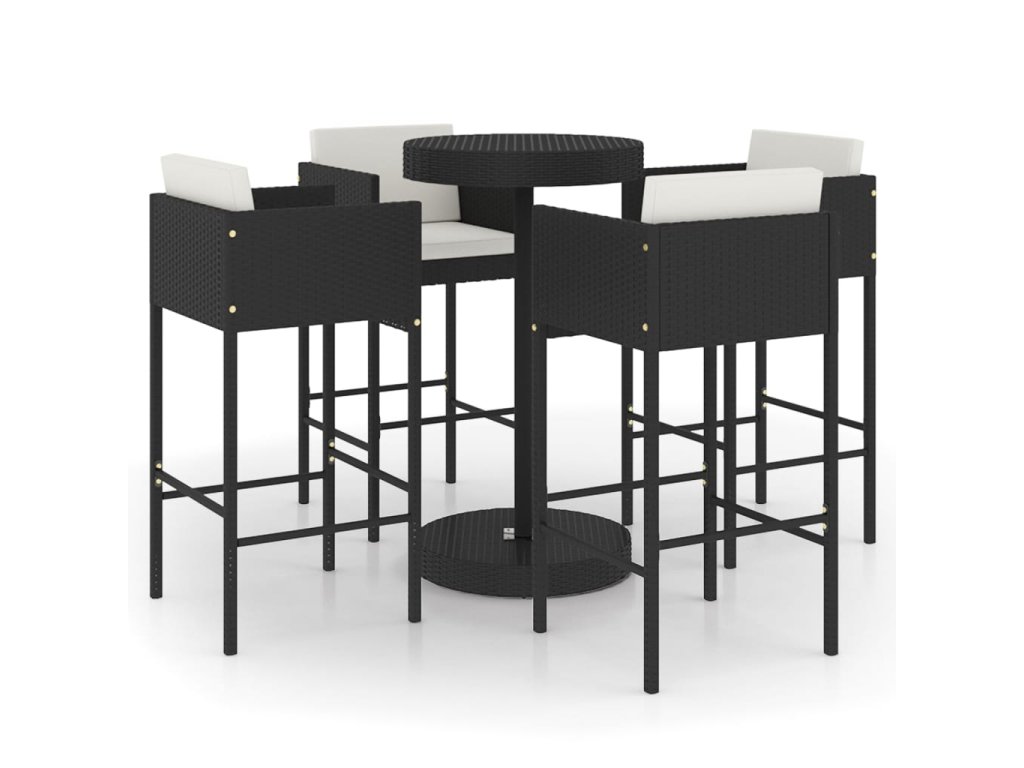 5dílný zahradní barový set s poduškami polyratan černý 3094775
