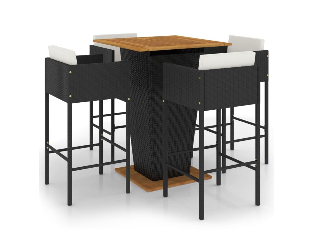 5dílný zahradní barový set s poduškami polyratan černý 3094804