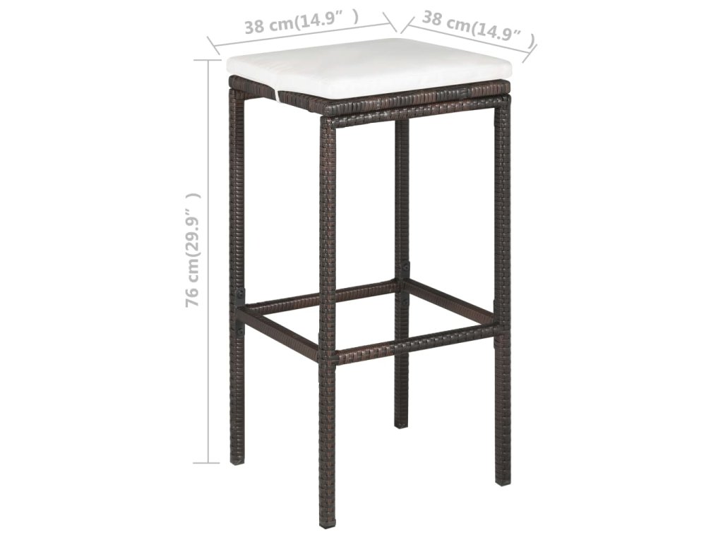Barový set je vyrobený z PE ratanu, který výborně vzdoruje vodě i dalším klimatickým vlivům, a tak se snadno čistí, hodně toho vydrží a můžete ho klidně používat každý den. Rám z práškově lakované oceli přidává stolu i stoličkám na odolnosti a prodlužuje jejich životnost. Nábytek má ovšem zároveň lehkou konstrukci, abyste mohli všechny díly bez námahy přesouvat. Tlusté odnímatelné podušky na sedáky vám zajistí mimořádné pohodlí. Jejich potahy mají navíc zapínání na zip, což výrazně usnadňuje jejich sejmutí a praní.