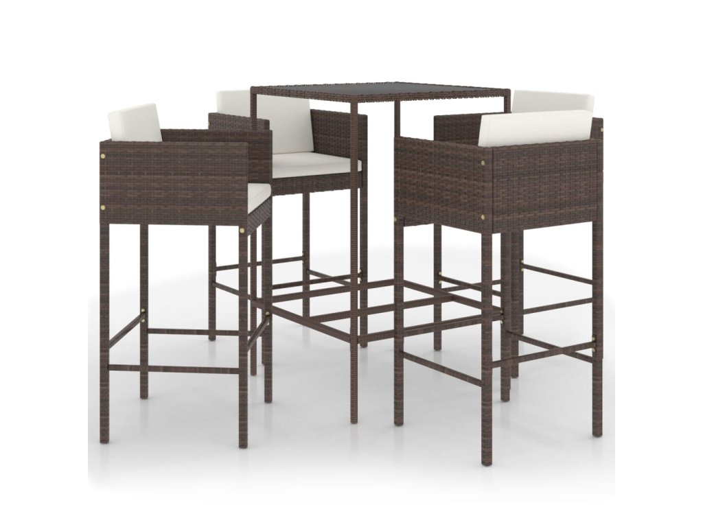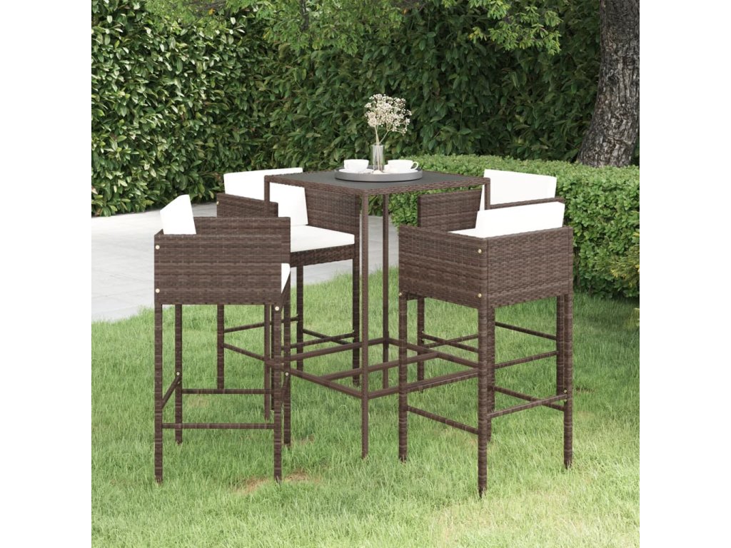 5dílný zahradní barový set s poduškami polyratan hnědý 3094789