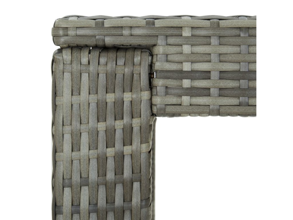 Barový stůl je zpevněný ocelovým rámem s práškovým nástřikem, takže je stabilní a bytelný. Čtvercová deska stolu je ideální pro servírování nápojů, jídla nebo k vystavování dekorativních předmětů. Stoličky mají robustní rám z oceli a jsou vyrobené z klimaticky odolného PE ratanu, který je zárukou stability a umožňuje snadné přenášení. Poduška a opěrka na nohy přispívají k většímu pohodlí při sezení na stoličce. Polyesterový potah na podušky se skrytým zipem usnadňuje čištění.
