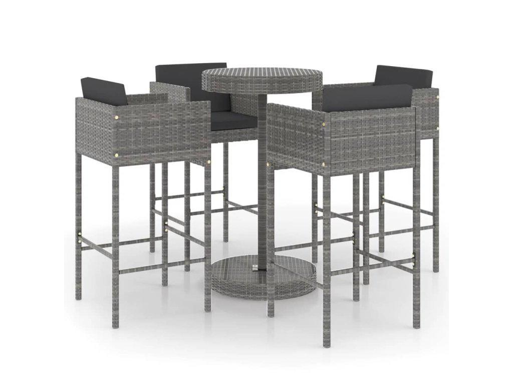 5dílný zahradní barový set s poduškami polyratan šedý 3094776