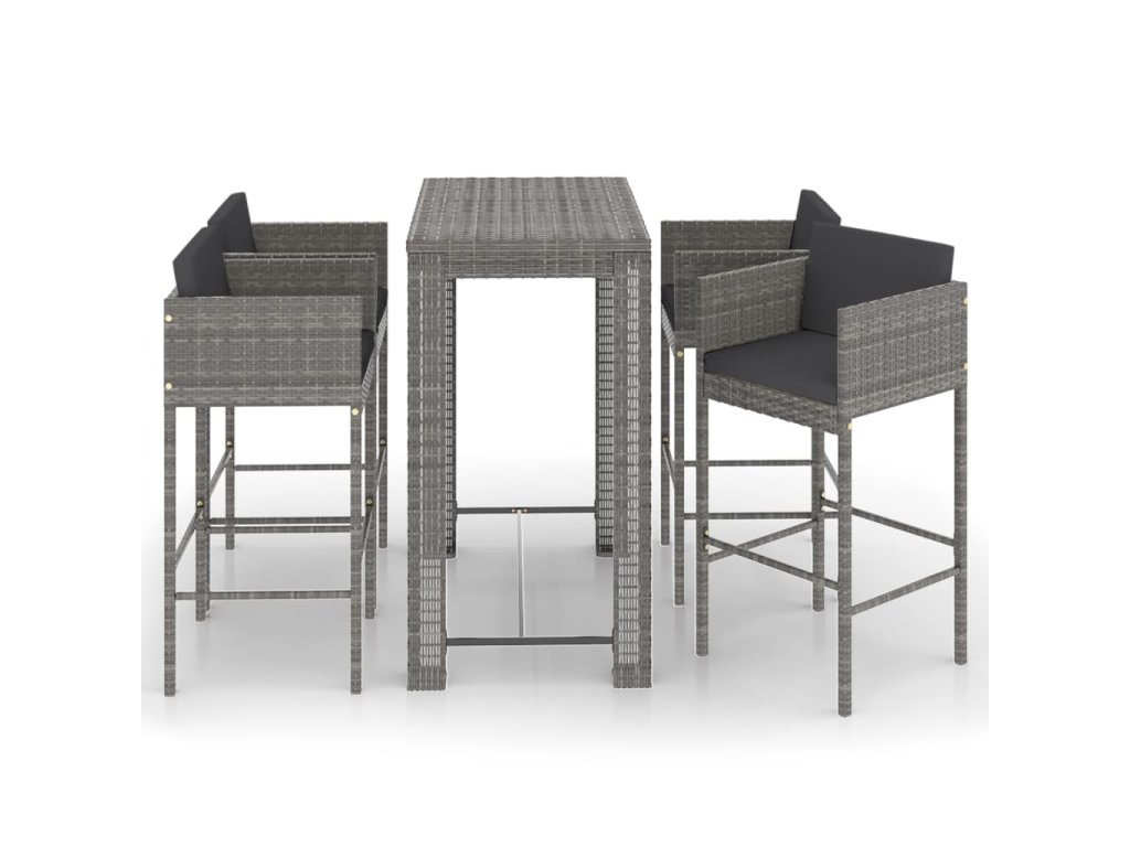 5dílný zahradní barový set s poduškami polyratan šedý 3094785
