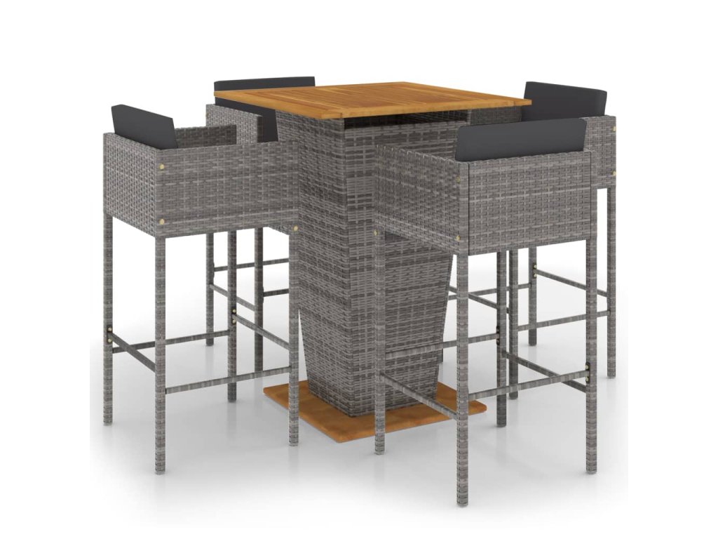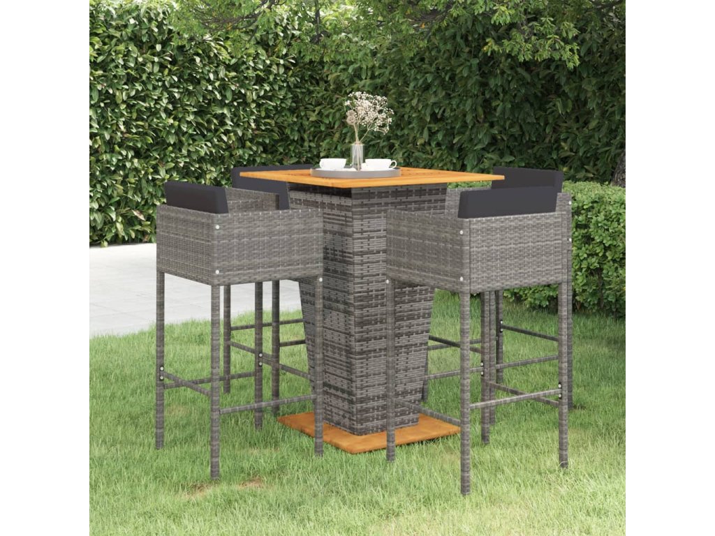 5dílný zahradní barový set s poduškami polyratan šedý 3094805