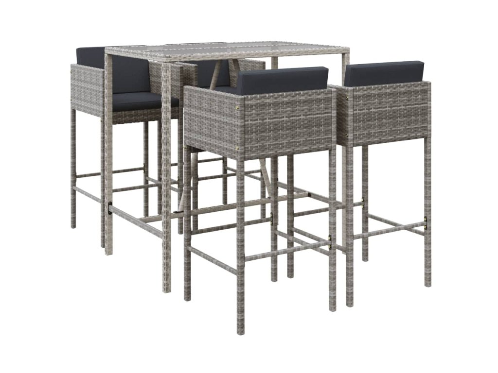 5dílný zahradní barový set s poduškami šedý polyratan 3200659