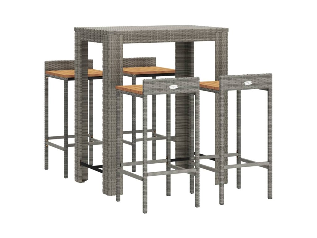 5dílný zahradní barový set šedý polyratan a masivní akácie 3187709