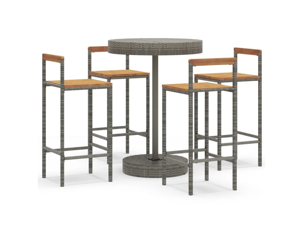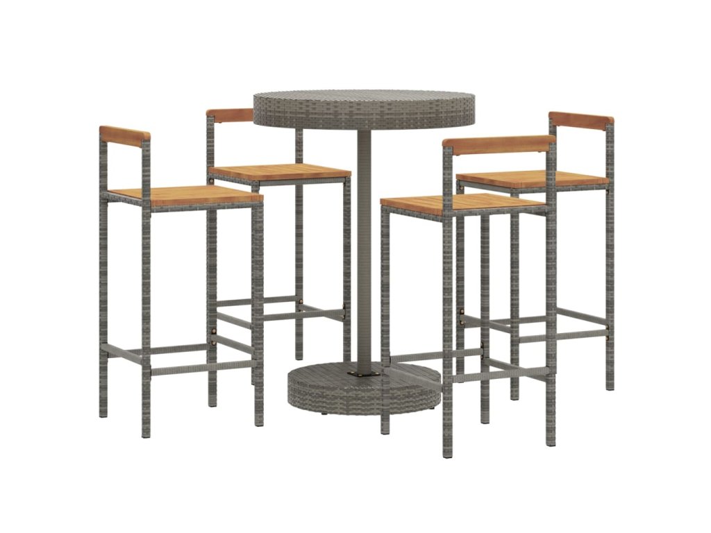 5dílný zahradní barový set šedý polyratan a masivní akácie 3187721