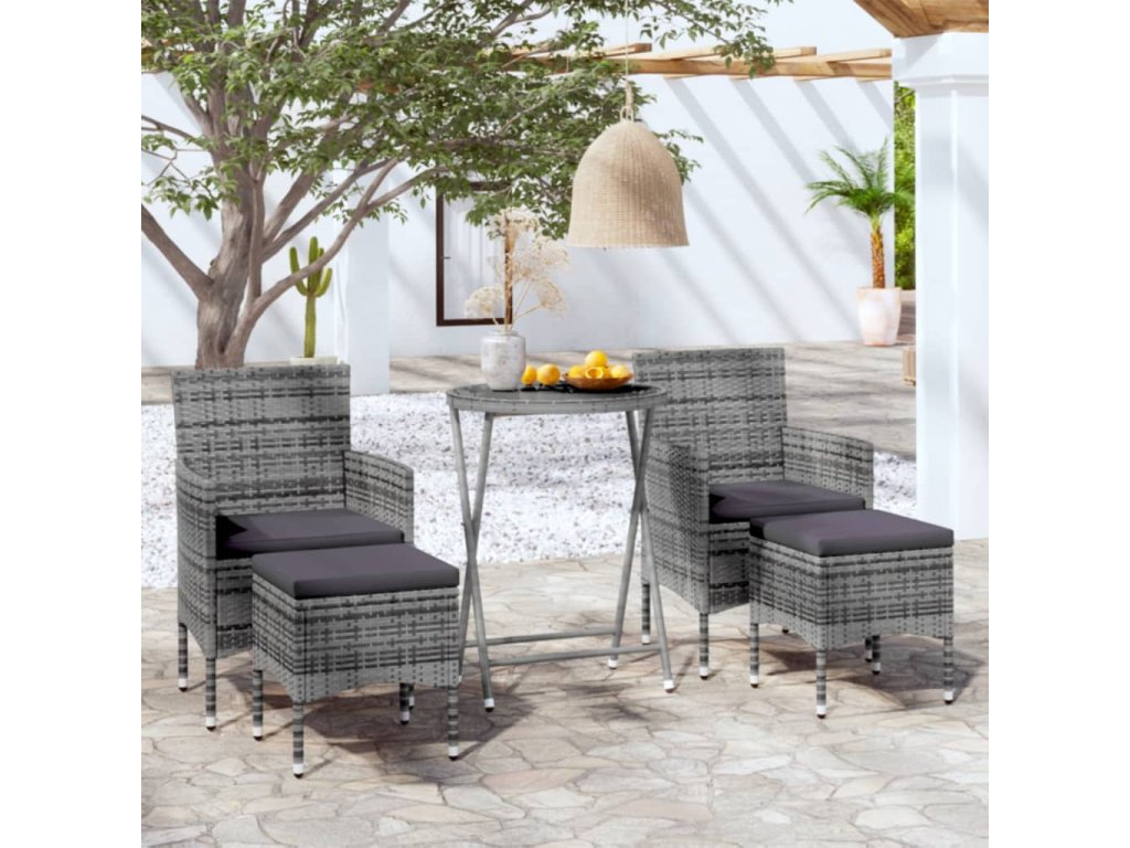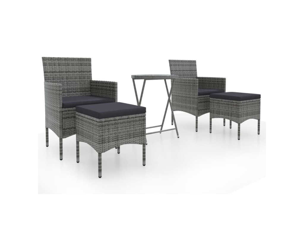 5dílný zahradní bistro set polyratan a tvrzené sklo šedý 3058389
