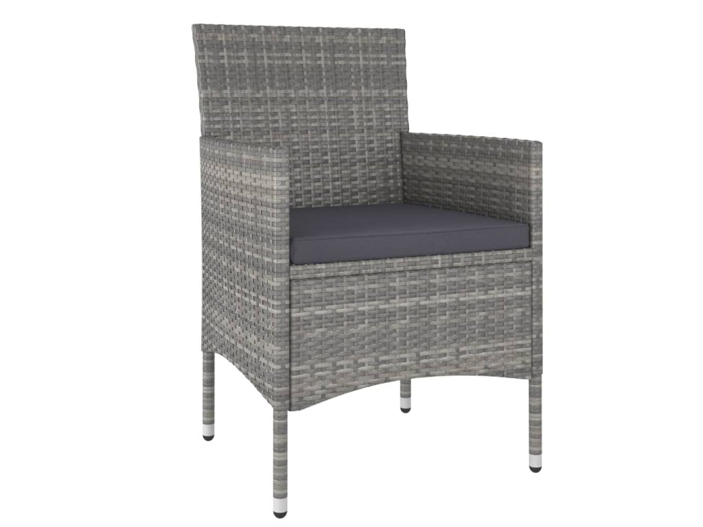 Stůl a židle mají práškově lakovaný ocelový rám opletený PE ratanem, který skvěle odolává povětrnostním vlivům i UV záření, jsou tedy stabilní a mají dlouhou životnost. Židle jsou navrženy se zaobleným opěradlem a područkami pro maximální pohodlí. Součástí balení jsou také podušky, které vám poskytnou ještě větší komfort. Potah je navíc vybaven zipem, takže se dá jednoduše sejmout a vyprat. Stolní deska je zhotovená ze zesíleného tvrzeného skla zasazeného v pevném rámu, snadno se tedy čistí a udržuje. Dvě podnožky zároveň slouží jako dodatečná místa k sezení. Nábytek se vyznačuje lehkou konstrukcí, všechny kusy lze tudíž bez námahy přemisťovat, přestavovat a přepravovat.