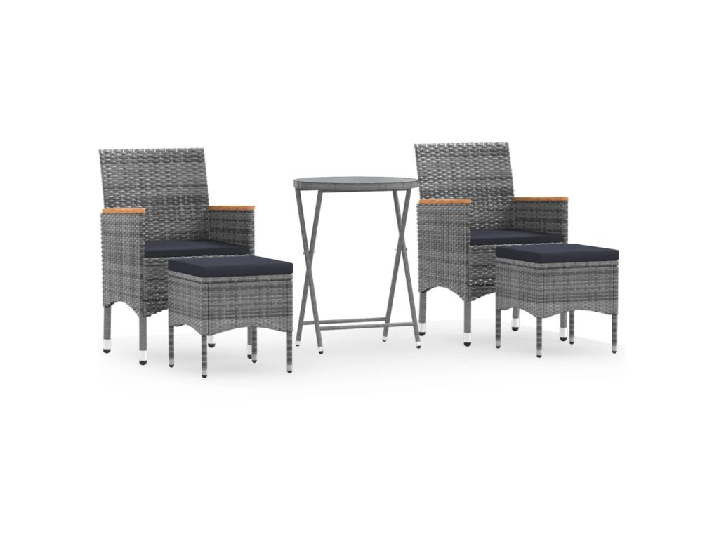 5dílný zahradní bistro set polyratan a tvrzené sklo šedý 3058395