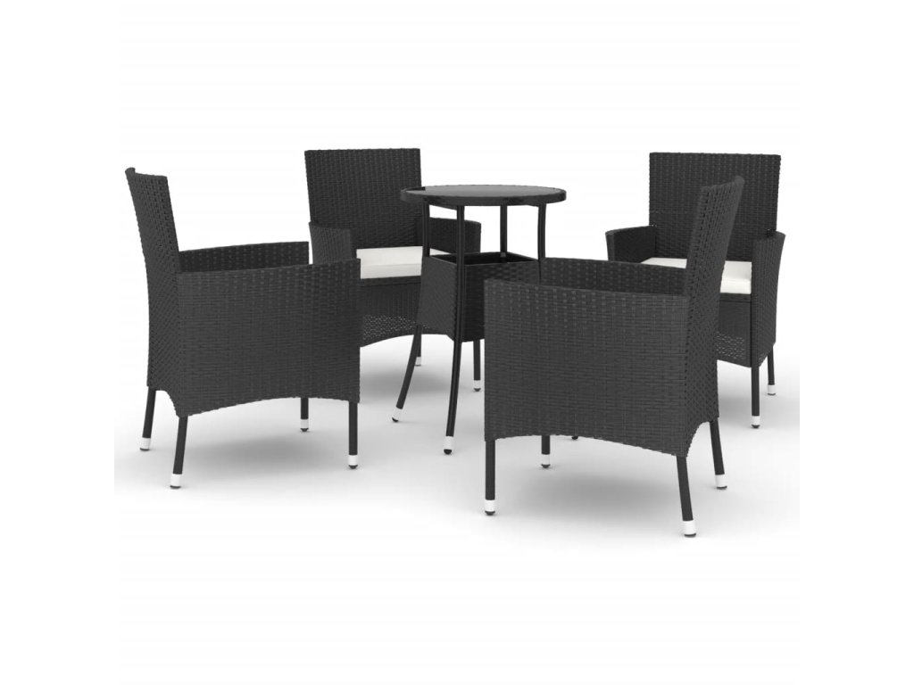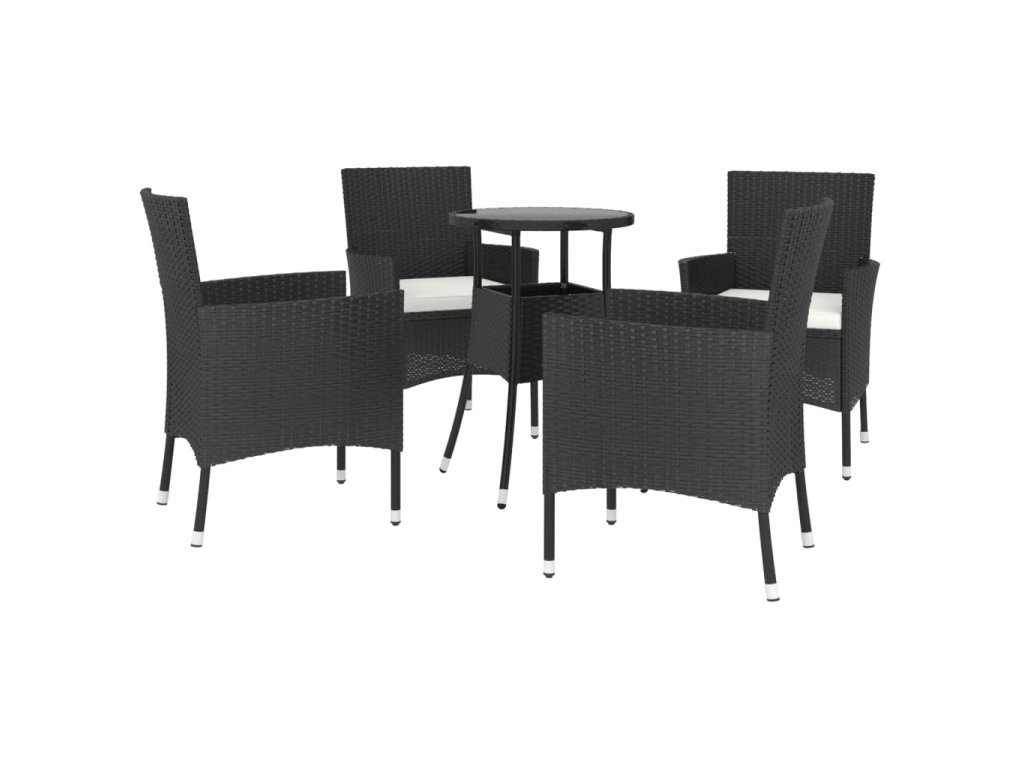 5dílný zahradní bistro set s poduškami černý polyratan 3187415