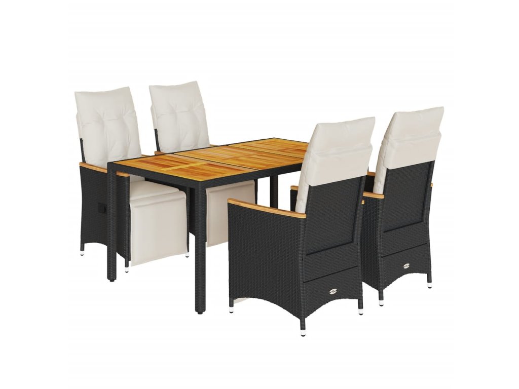 5dílný zahradní bistro set s poduškami černý polyratan 3276961