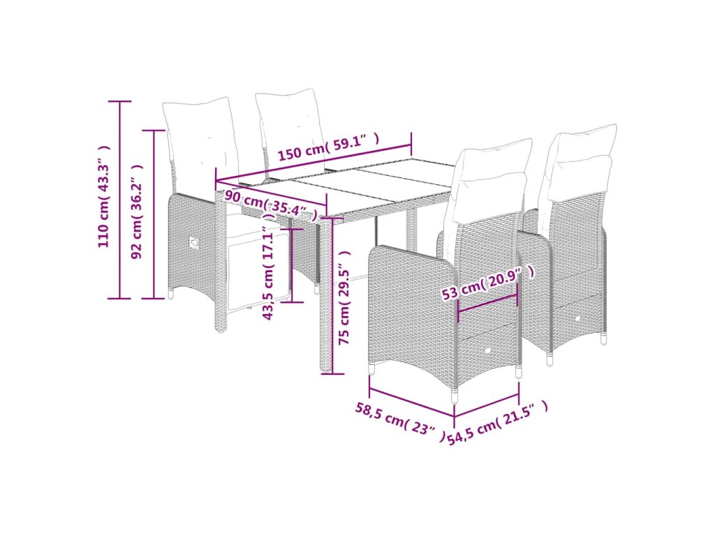 - Materiál: PE ratan, práškově lakovaná ocel, tvrzené sklo