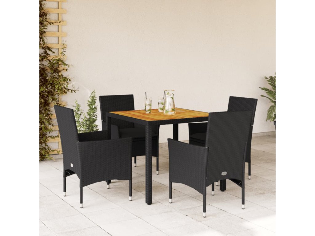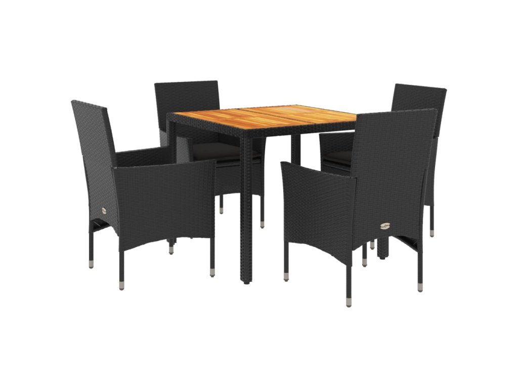 5dílný zahradní jídelní set a podušky černý polyratan a akácie 3278670