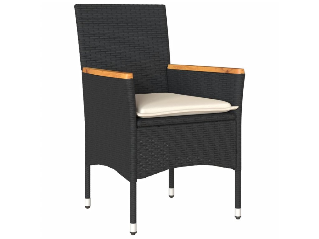 5dílný zahradní jídelní set a podušky černý polyratan a akácie 3278698