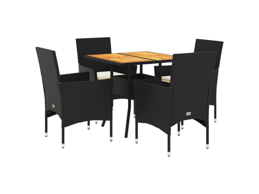 5dílný zahradní jídelní set a podušky černý polyratan a akácie 3278710