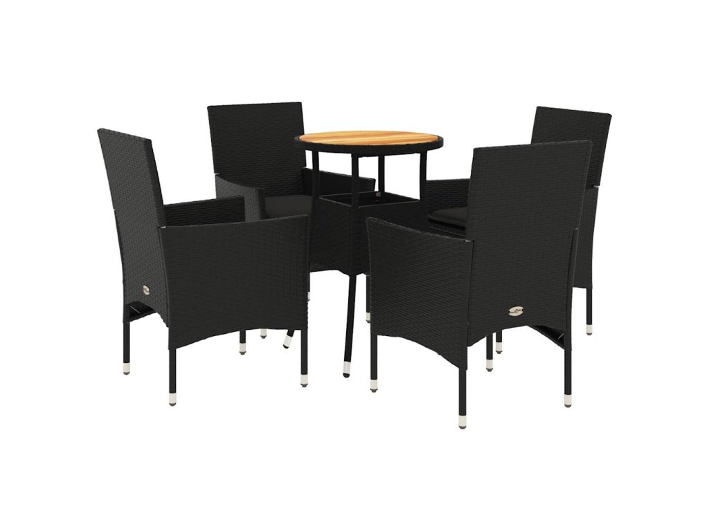 5dílný zahradní jídelní set a podušky černý polyratan a akácie 3278730