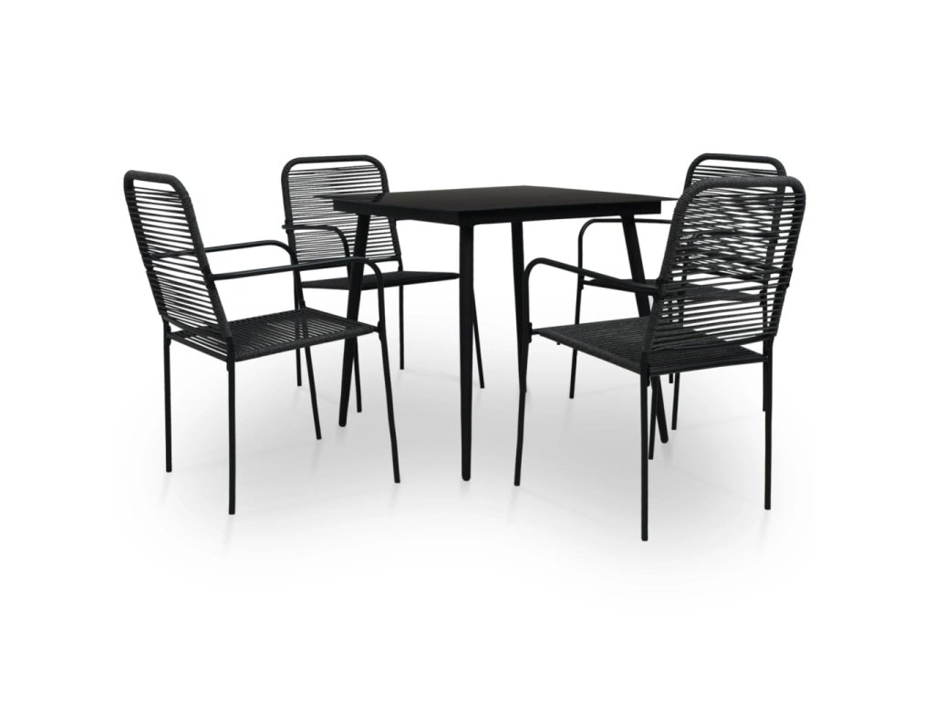 5dílný zahradní jídelní set bavlněné provázky a ocel černý 3058276