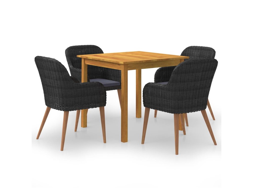 Jídelní stůl je zhotovený z masivního akáciového dřeva s olejovaným povrchem, takže je stabilní, odolný a nenáročný na údržbu. Jídelní židle mají rám z práškově lakované oceli, opletený PE ratanem, který výborně vzdoruje klimatickým vlivům. Dlouho vám proto vydrží a snadno je očistíte. Ergonomický tvar spolu s hustě polstrovanými poduškami vám při sezení zaručí maximální pohodlí. Polyesterové potahy podušek nevyžadují téměř žádnou údržbu a dají se jednoduše stáhnout a oprat.