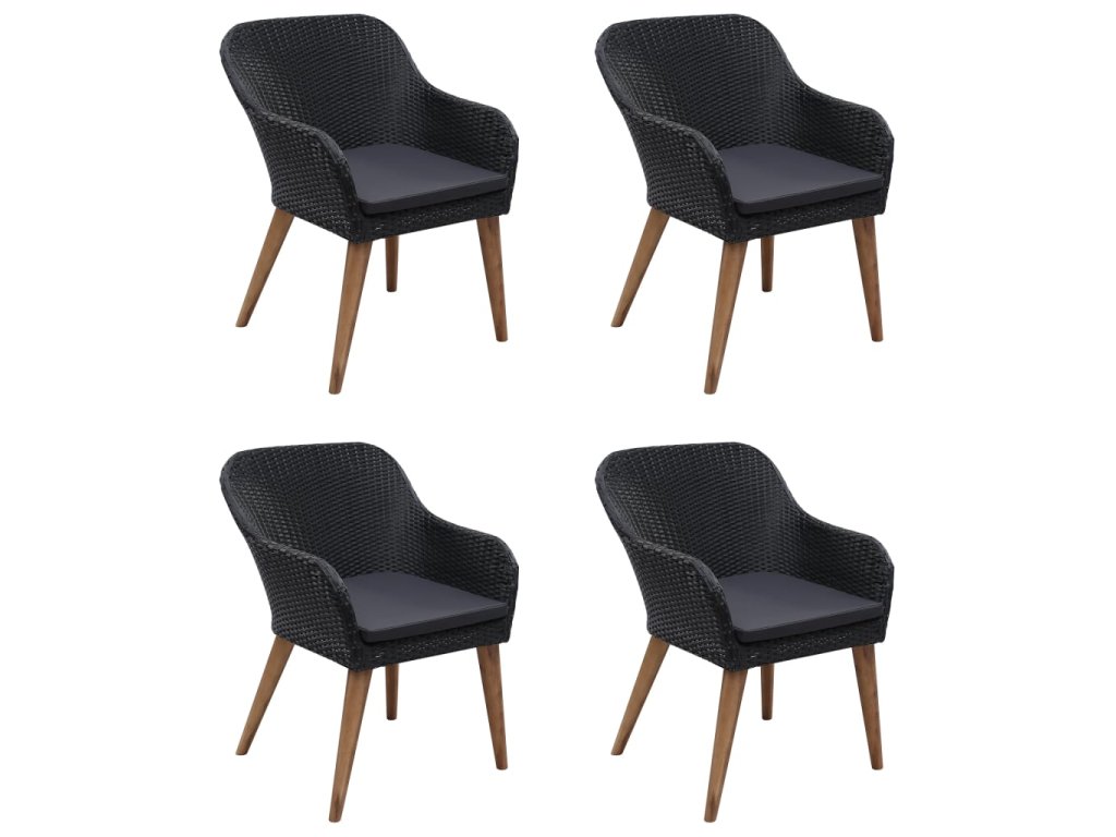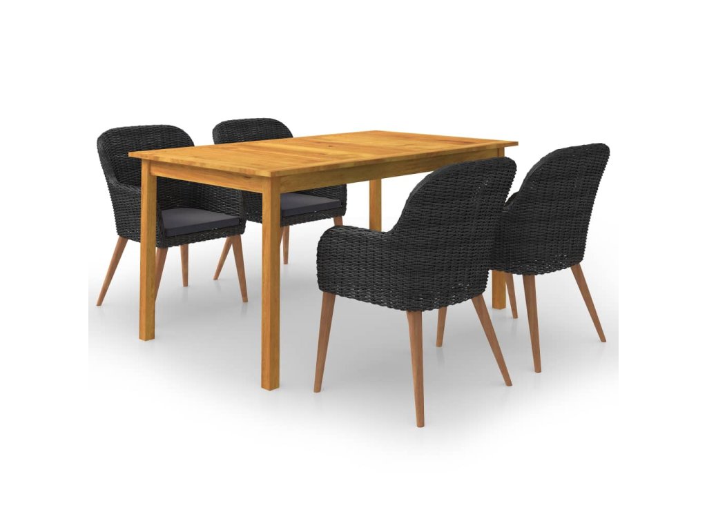 Jídelní stůl je zhotovený z masivního akáciového dřeva s olejovaným povrchem, takže je stabilní, odolný a nenáročný na údržbu. Jídelní židle mají rám z práškově lakované oceli, opletený PE ratanem, který výborně vzdoruje klimatickým vlivům. Dlouho vám proto vydrží a snadno je očistíte. Ergonomický tvar spolu s hustě polstrovanými poduškami vám při sezení zaručí maximální pohodlí. Polyesterové potahy podušek nevyžadují téměř žádnou údržbu a dají se jednoduše stáhnout a oprat.