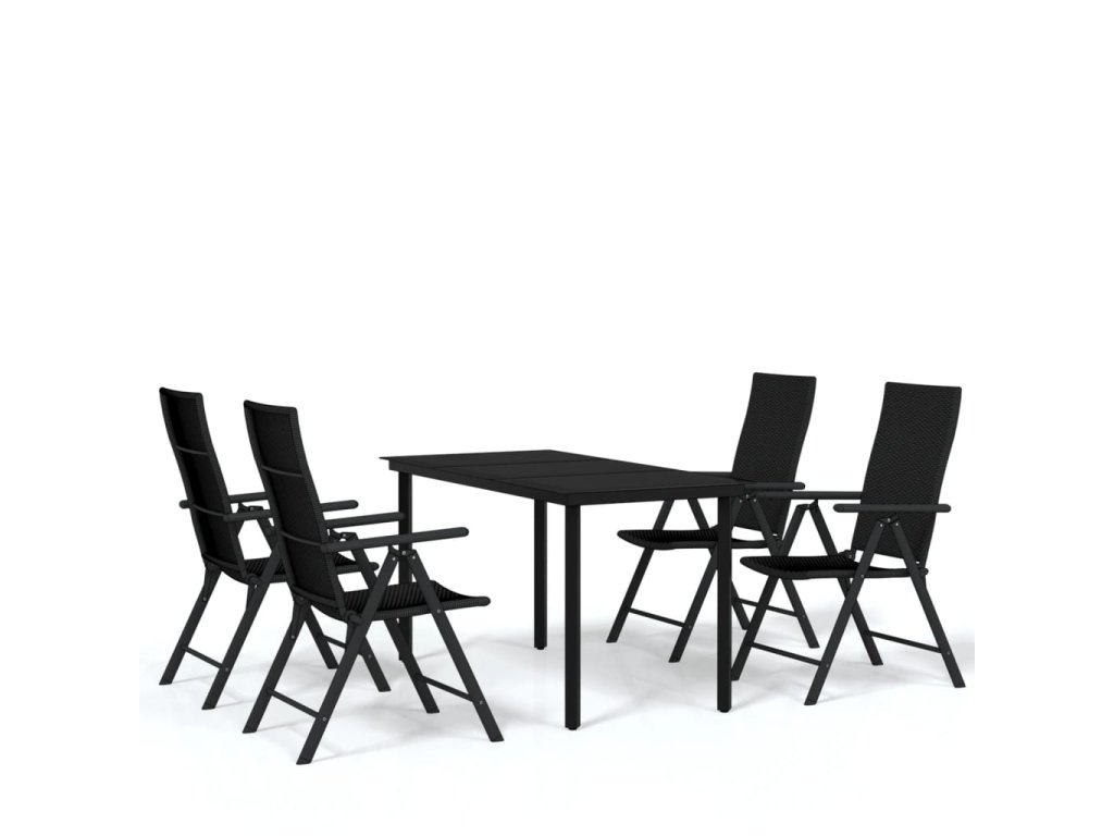 Tento zahradní jídelní stůl je vyrobený z ocelového rámu s práškovým povlakem, takže je robustní a stabilní pro každodenní venkovní použití. Hladká skleněná stolní deska se snadno čistí vlhkým hadříkem. Navíc se skvěle hodí k servírování jídla či pití a k vystavování různých dekorací. Židle na terasu jsou vyrobené z PE ratanu, takže jsou lehké a voděodolné. Opěradla židlí lze navíc sklopit do 7 různých poloh, takže snadno najdete polohu, ve které se vám bude sedět nejpohodlněji. Pokud židle právě nepoužíváte, můžete je složit, aby vám zbytečně nepřekážely.