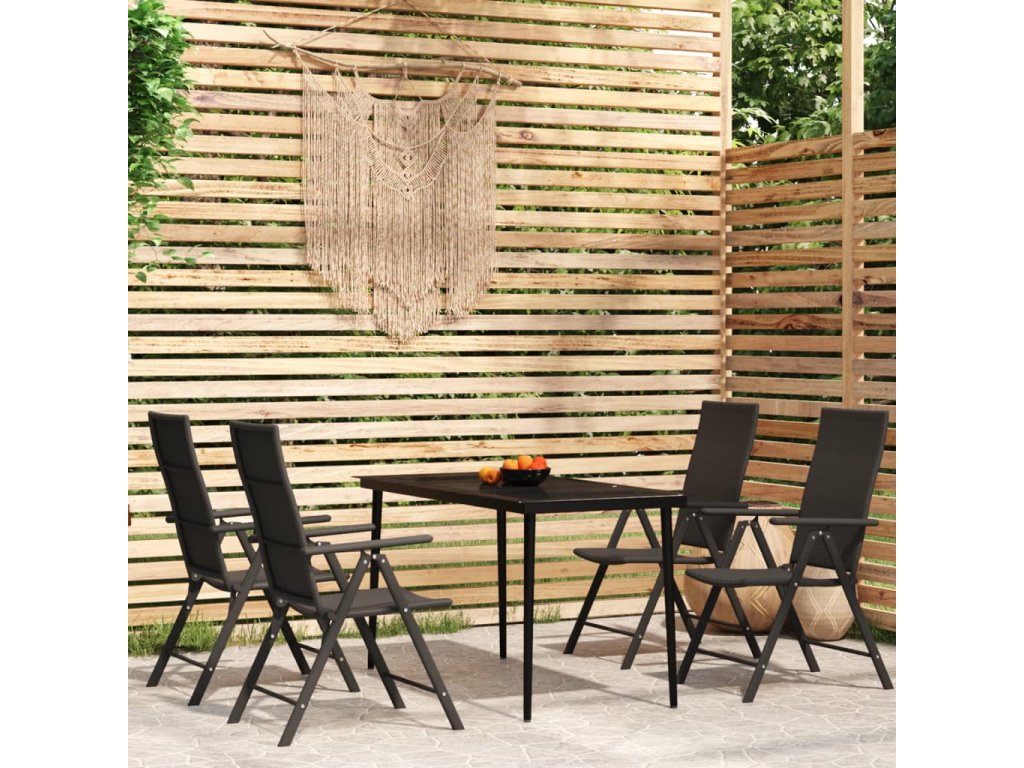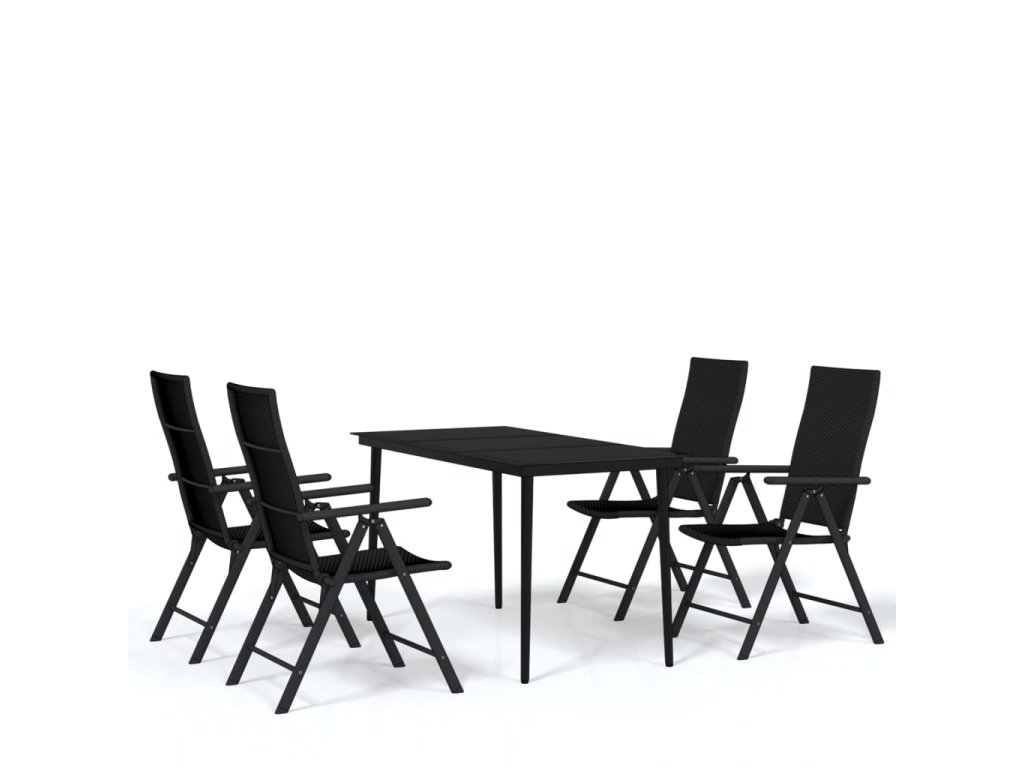 Zahradní jídelní stůl má práškově lakovaný ocelový rám, takže je robustní a stabilní a ideální pro venkovní použití. Hladká skleněná deska stolu se snadno čistí vlhkým hadříkem a skvěle vám poslouží k podávání jídla a pití nebo k vystavení různých dekorativních předmětů. Židle jsou vyrobené z PE ratanu, jsou proto lehké a voděodolné. Jejich opěradla lze navíc naklonit do 7 různých poloh, abyste si mohli vždy najít ten nejpohodlnější způsob sezení. Pokud židle zrovna nepoužíváte, můžete je složit, a ušetřit tak místo.