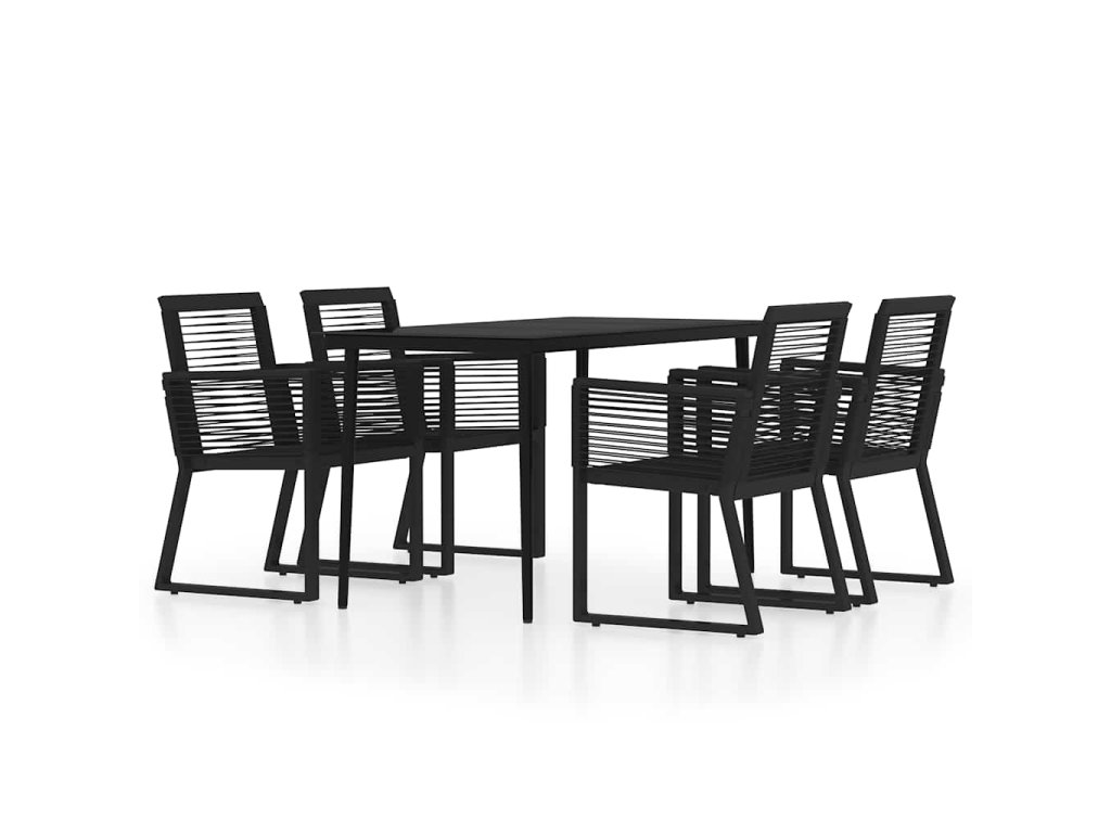 Jídelní stůl má práškově lakovaný ocelový rám, takže je robustní a stabilní a ideální pro každodenní venkovní použití. Hladká skleněná stolní deska se snadno čistí vlhkým hadříkem a skvěle vám poslouží k podávání jídla a pití nebo k vystavení různých dekorativních předmětů. Zahradní židle jsou vyrobeny z PVC ratanu, napleteného na jemně lakovaný ocelový rám, proto jsou stabilní a odolné vůči nepříznivému počasí a UV záření.