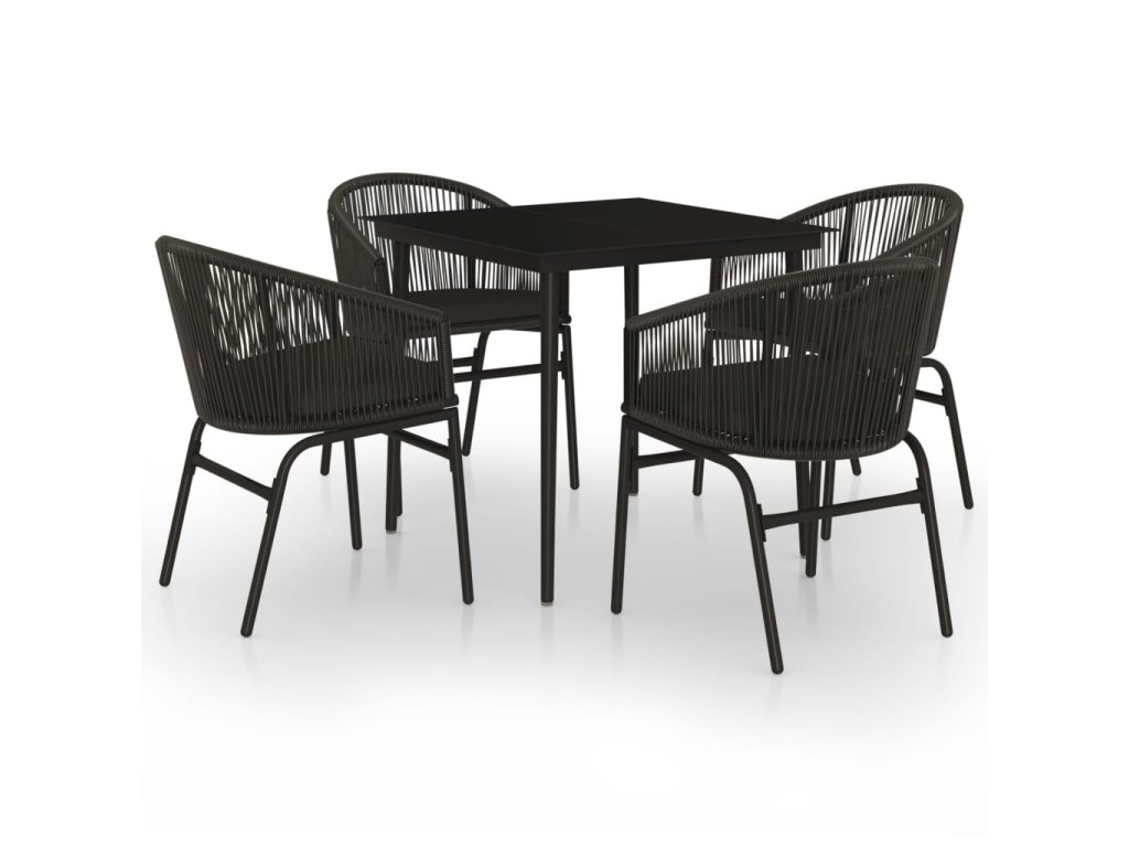 Zahradní jídelní set má práškově lakovaný ocelový rám, takže je robustní a stabilní a ideální pro venkovní použití. Hladká skleněná deska stolu se snadno čistí vlhkým hadříkem a skvěle vám poslouží k podávání jídla a pití nebo k vystavení různých dekorativních předmětů. Židle jsou vyrobené z PVC ratanu, jsou proto odolné a výborně vzdorují UV záření i špatnému počasí. Každá z nich je navíc opatřená odnímatelnou hustě polstrovanou poduškou, a zpříjemní vám tak váš odpočinek.