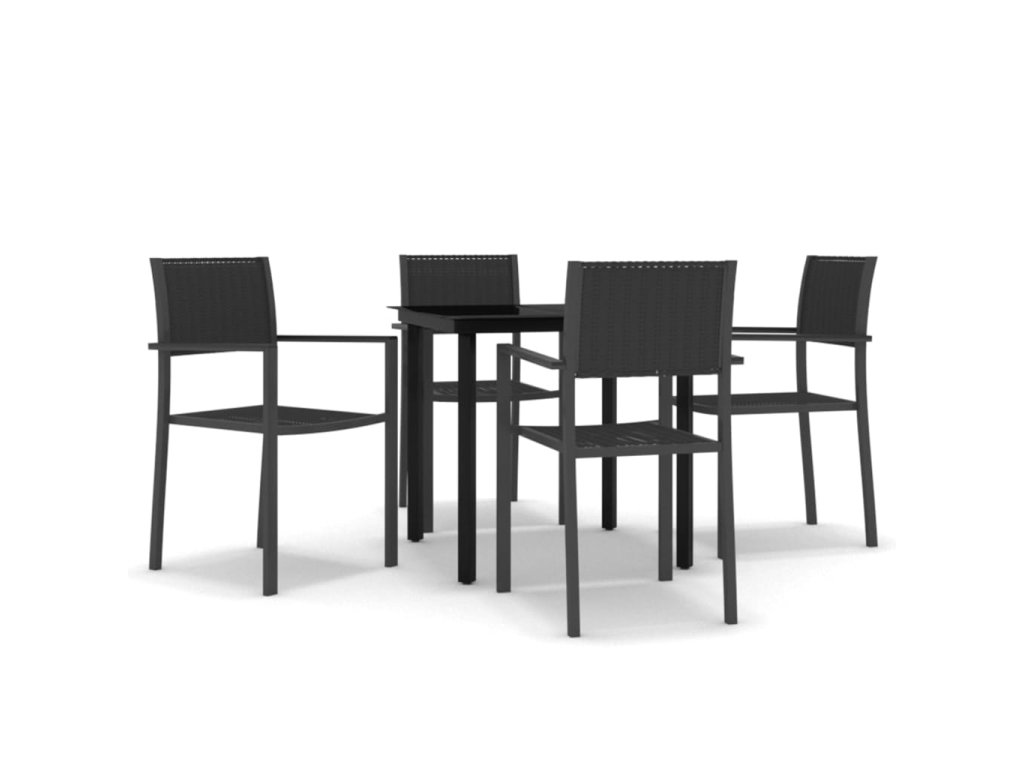 Jídelní set na terasu má práškově lakovaný ocelový rám, takže je robustní a stabilní a ideální pro venkovní použití. Hladká skleněná deska stolu se snadno čistí vlhkým hadříkem a skvěle vám poslouží k podávání jídla a pití nebo k vystavení různých dekorativních předmětů. Lehké jídelní židle jsou vyrobené z plastu, lze je proto bez problémů udržovat v čistotě a přesouvat je. Svým provedením navíc připomínají ratan, a tak vnesou do vašeho venkovního bydlení nádech přírodního kouzla!