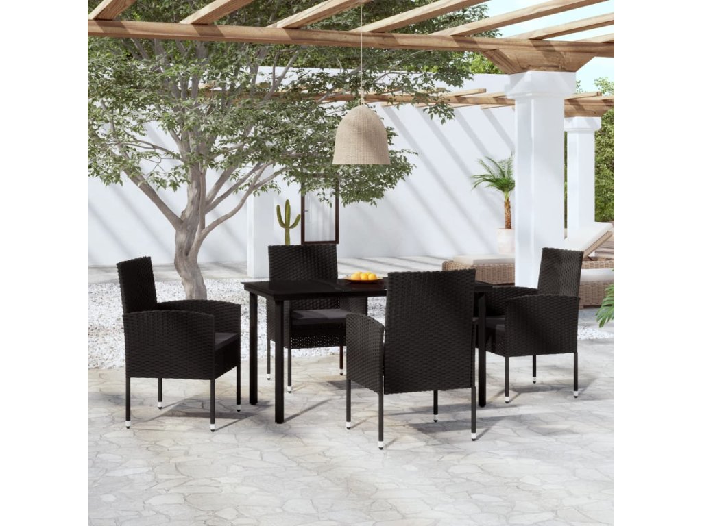Praktická zahradní jídelní sestava má ocelový rám, takže je pevná a odolná. Zahradní židle jsou vyrobené z voděodolného PE ratanu, jsou tedy nenáročné na údržbu a ideální pro venkovní použití. Hladká skleněná stolní deska, kterou snadno očistíte vlhkým hadříkem, vám výborně poslouží k podávání jídla a pití nebo k vystavení dekorativních předmětů. Tlusté podušky jsou odnímatelné a mimořádně pohodlné.