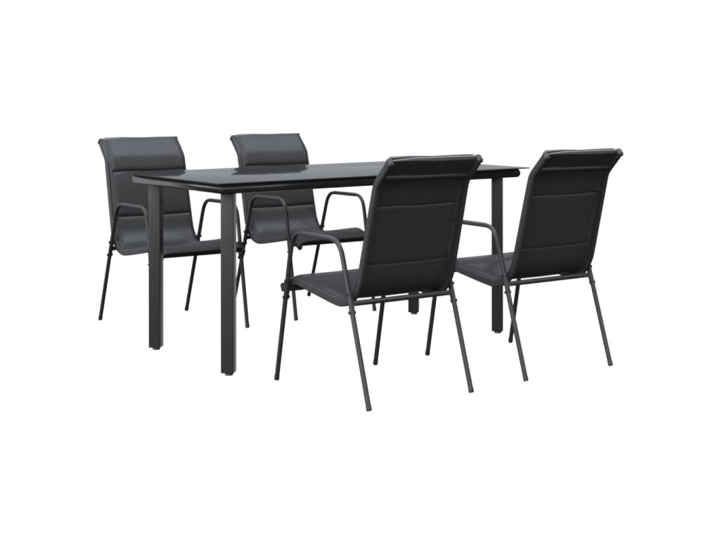 5dílný zahradní jídelní set černý ocel a textilen 3200714
