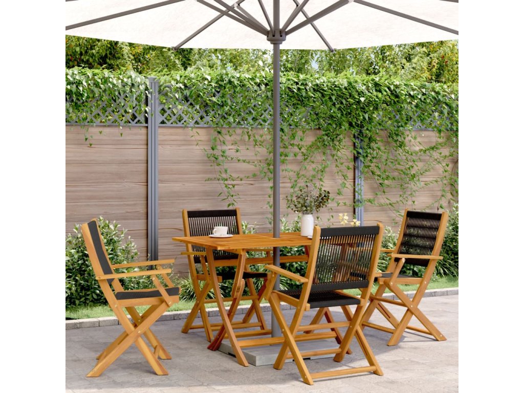 5dílný zahradní jídelní set černý polypropylen a masivní dřevo 3281697