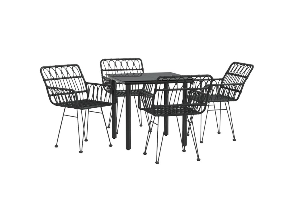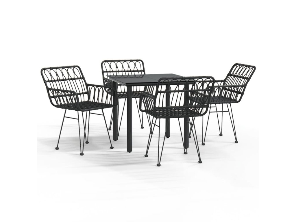 5dílný zahradní jídelní set černý polyratan 3157867