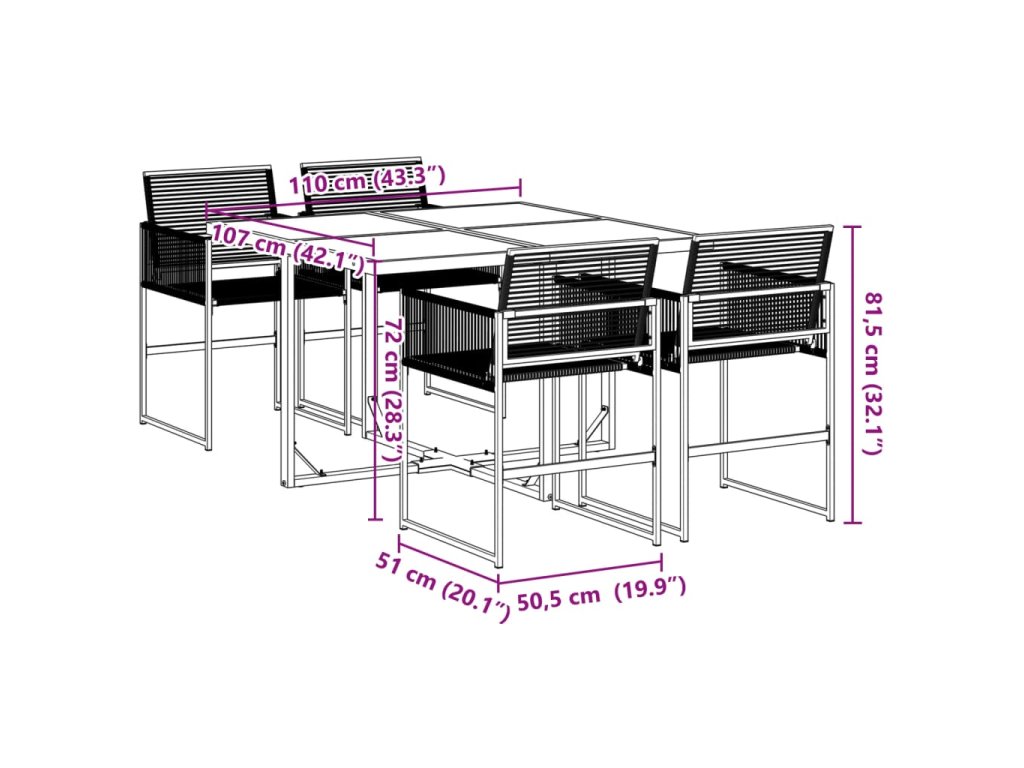 - Robustní a stabilní rám: Ocelový rám s práškovým nástřikem zajišťuje, že zahradní nábytek je pevný a stabilní pro každodenní venkovní použití.