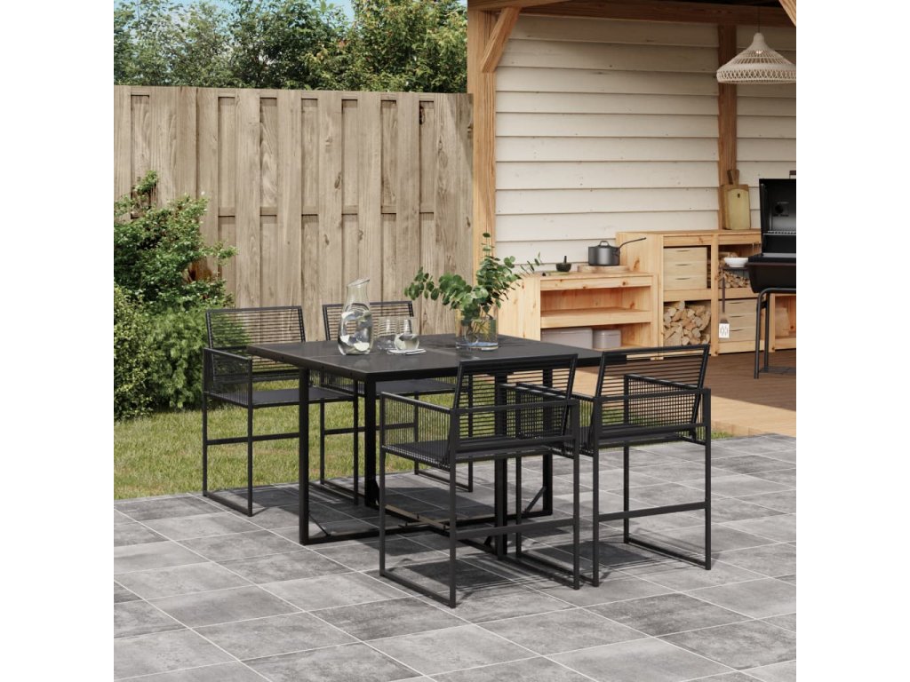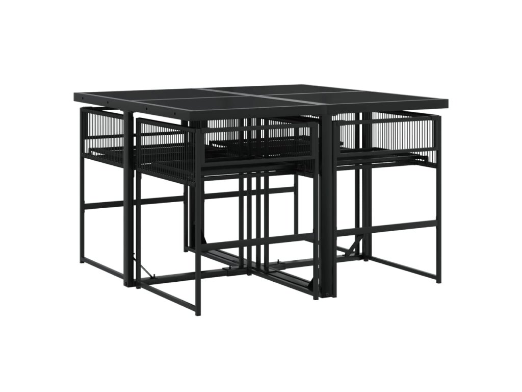 5dílný zahradní jídelní set černý polyratan 3295048