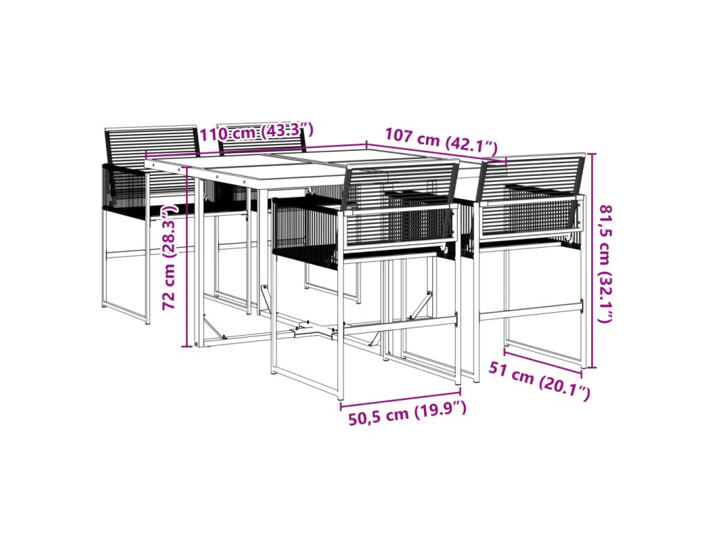 Tento zahradní jídelní set je skvělou volbou pro stolování pod širým nebem nebo jen tak pro odpočívání na zahradě, dvorku či terase.