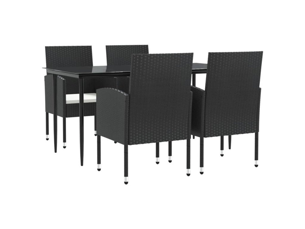 5dílný zahradní jídelní set černý polyratan a ocel 3203308
