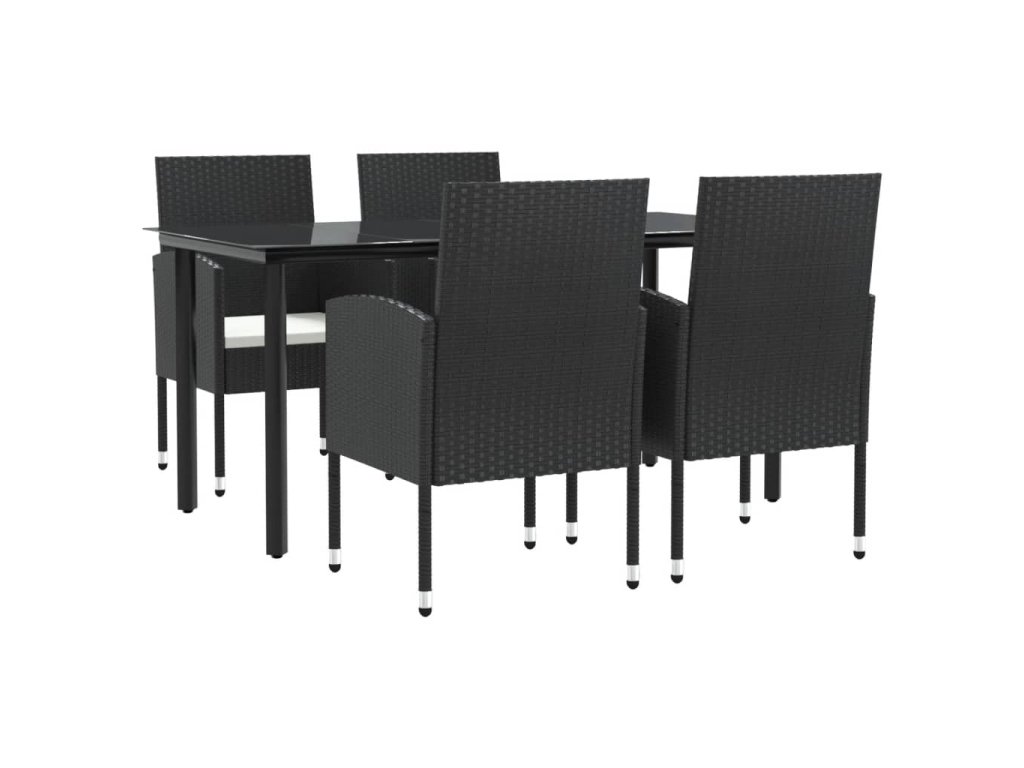 5dílný zahradní jídelní set černý polyratan a ocel 3203316