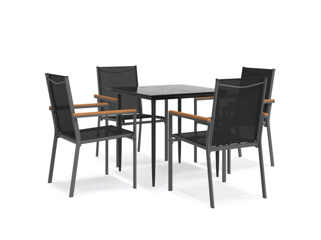 5dílný zahradní jídelní set černý textilen a ocel 3187034